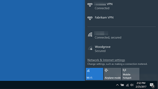 If the VPN section in Settings opens, select the VPN connection there, then select Connect.